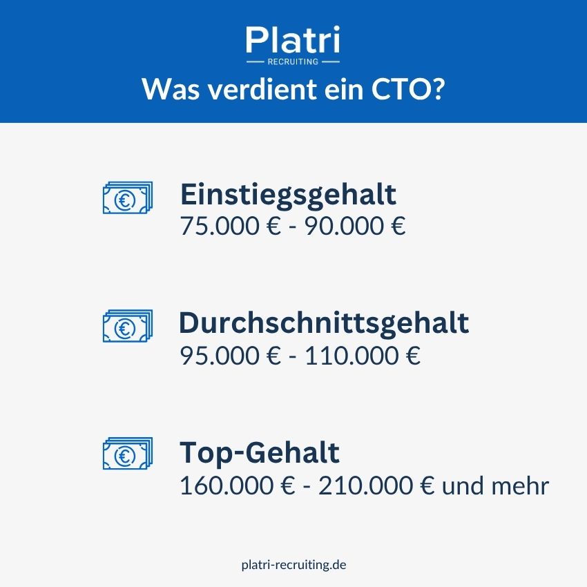 Das Gehalt eines CTOs hängt stark von Faktoren wie Unternehmensgröße, Branche, Standort und Erfahrung ab. In Deutschland liegt das durchschnittliche CTO-Gehalt bei: